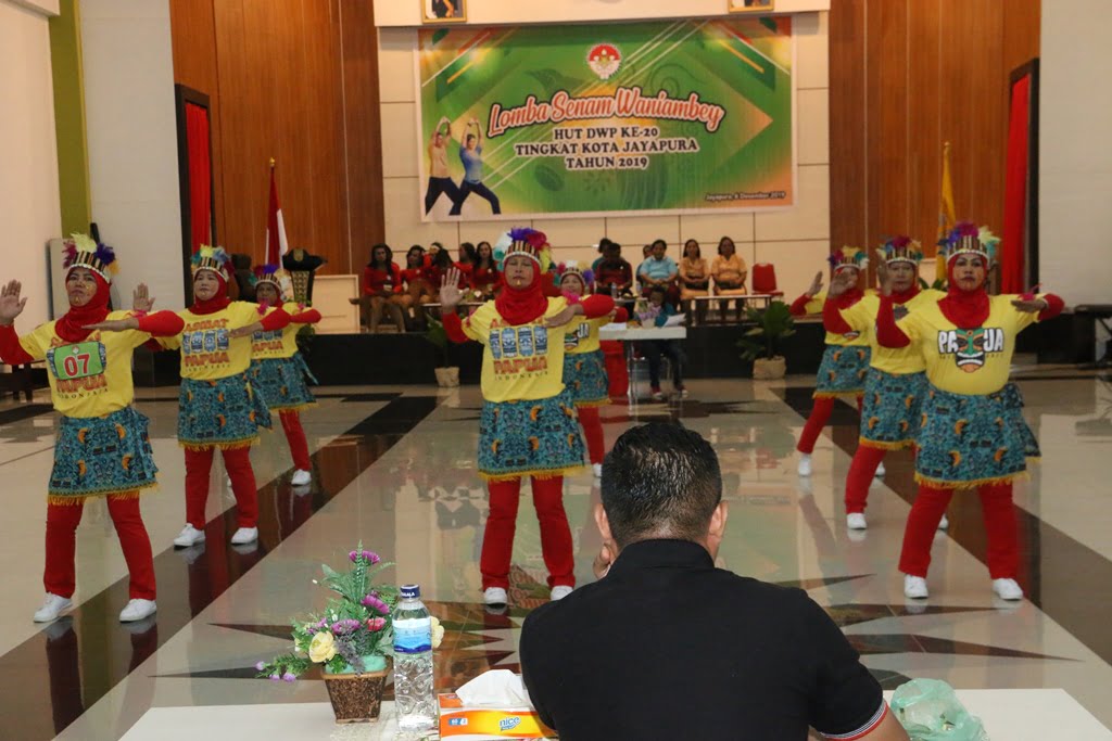 Jayapura,Teraspapua.com – Dalam rangka memperingati Hari Ulang Tahun (HUT) Dharma Wanita Persatuan (DWP) yang ke-20, panitia setempat menggelar lomba senam Waniambey di Gedung Sian Soor, Kantor Wali Kota Jayapura, jumat (6/12/2019), dan diikuti oleh 7 peserta serta satu regu eksibisi yakni Rojali.