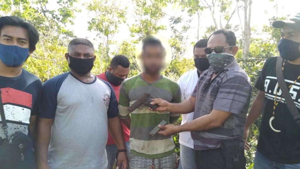 “Baru kami diketahui ternyata pelaku memiliki Pistol jenis Softgun yang biasa digunakan untuk melakukan penodongan, pistol tersebut disimpan dengan cara dikubur dibelakang rumah, sekitar 50 meter dari rumah pelaku,” ungkap Ipda Akrom.