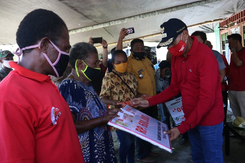 Jayapura,Teraspapua.com – Wali Kota Jayapura,Dr.Benhur Tomi Mano,MM secara resmi menyerahkan Bantuan Langsung (BLT) Dana Desa (DD) kepada masyarakat penerima manfaat Kampung Skouw Yambe,Kamis (4/6/2020).