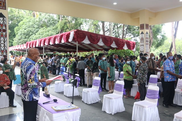 Pelaksanaan prosesi pentatan perkawinan tersebut dipusatkan di parkiran utama kantor Wali Kota Jayapura Provinsi Papua, Sabtu (10/4/2021), yang merupakan program Benhur Tomi Mano semenjak menjabat Wali Kota dari 2012 -2021 ini.