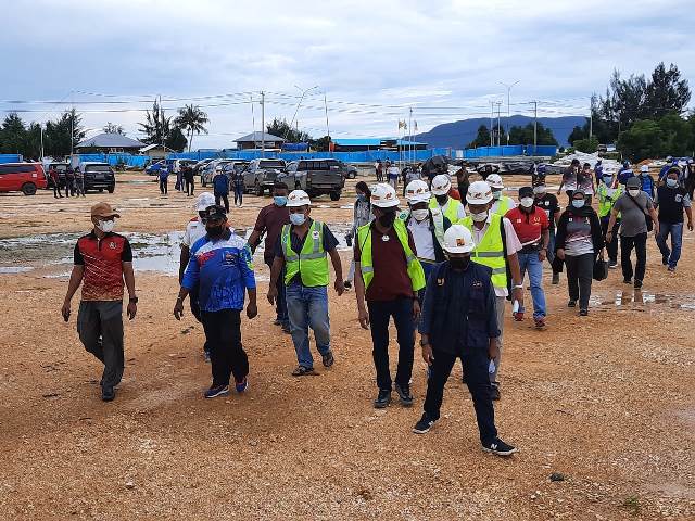 Jayapura, Teraspapua.com – Ketua Sub PB PON XX Kota Jayapura, Benhur Tomi Mano dan Ketua Bidang I PB PON  Yusuf Yambe Yabdi meninjau venue yang ada di cluster Kota Jayapura untuk memastikan progress penyelesaiannya, Sabtu ( 5/6/2021).