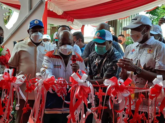 Jayapura, Teraspapua.com – Gubernur Papua,Lukas Enembe, S. IP, MH meresmikan sekretariat Sub PB PON XX Kota Jayapura, ditandai dengan penekanan tombol serine dan pengguntingan pita, Sabtu ( 11/9).