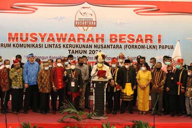 Jayapura, Teraspapua.com – Forum Komunikasi Lintas Kerukunan Nusantara atau FORKOM – LKN Papua yang dibentuk sejak tahun 2010 adalah wadah Forum Komunikasi dari berbagai kerukunan atau paguyuban yang berasal dari Sabang sampai Merauke, berada di wilayah tanah Papua, berkedudukan di Kota Jayapura Provinsi Papua.