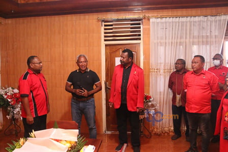Jayapura, Teraspapua.com – Ketua Bidang Kehormatan DPP PDI Perjuangan, Komarudin Watubun, SH,M.H Memeresmikan kantor DPC PDI Perjuangan Kota ,Jayapura di jalan Kampwolker Perumnas II Waena, Distrik Heram, Jumat (11/3/2022).