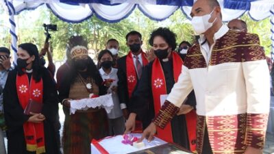 Kupang, Teraspapua.com – Satu penghargaan bagi Wali Kota Jayapura, Provinsi Papua, Benhur Tomi Mano dan istrinya, Kristhina R Luluporo Mano, dimana telah memenuhi undangan penthabisan dan peresmian gedung kebaktian GMIT Samaria Noelbaki, Klasis Kupang Tengah, Kabupaten Kupang, Provinsi Nusa Tenggara Timur, Minggu (6/5/2022).