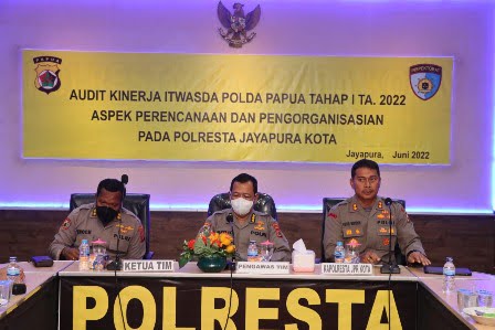 Jayapura, Teraspapua.com – Tim Audit Kinerja Itwasda Polda Papua Lakukan audit kinerja Aspek Perencanaan dan Pengorganisasian pada Polresta Jayapura TA.2022 bertempat di Aula Mapolresta Jayapura Kota, Senin (14/6) pagi.
