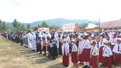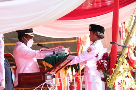 Pengibaran bendera pun berlangsung hikmat diiringi lagu kebangsaan “Indonesia Raya”