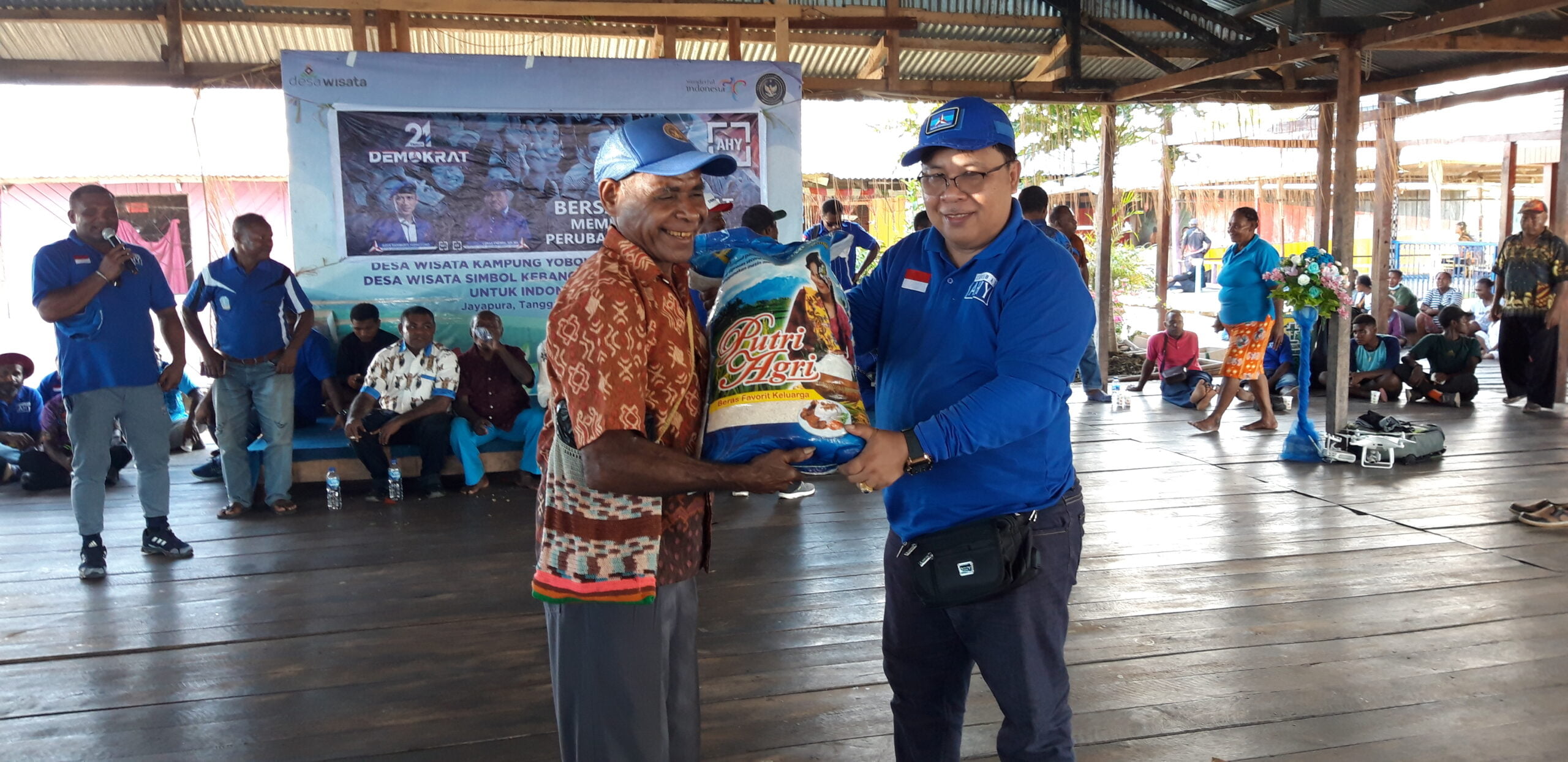 Usai membersihkan Pantai Yahim, DPD Demokrat Papua yang dipimpin Wakil Ketua, Yunus Wonda bersama pengurus DPC, kader partai dan simpatisan, mengunjungi Kampung Putali, Atamali, Babrongko dan Yoboi, di empat Kampung itu, DPD Demokrat Papua menyerahkan bantuan kebutuhan pokok.
