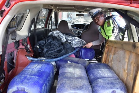 “Awalnya Mobil tersebut diberhentikan karena melanggar peraturan lalulintas dengan tidak menggunakan plat nomor atau TNKB, pada saat di periksa ke bagian dalam mobil terdapat selanh yang dihubungkan ke beberapa jerigen didalam mobil,” jelasnya.