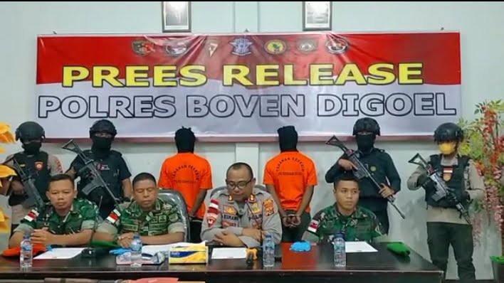Jayapura,Teraspapua.com – Polres Boven Digoel, berhasil amankan 2 orang yang diduga KKB saat membawa 4 Pucuk senjata Api Laras Panjang, 18 butir amunisi peluru Cal 12 GA, dan Uang Tunai sebesar Rp. 3.800.000.