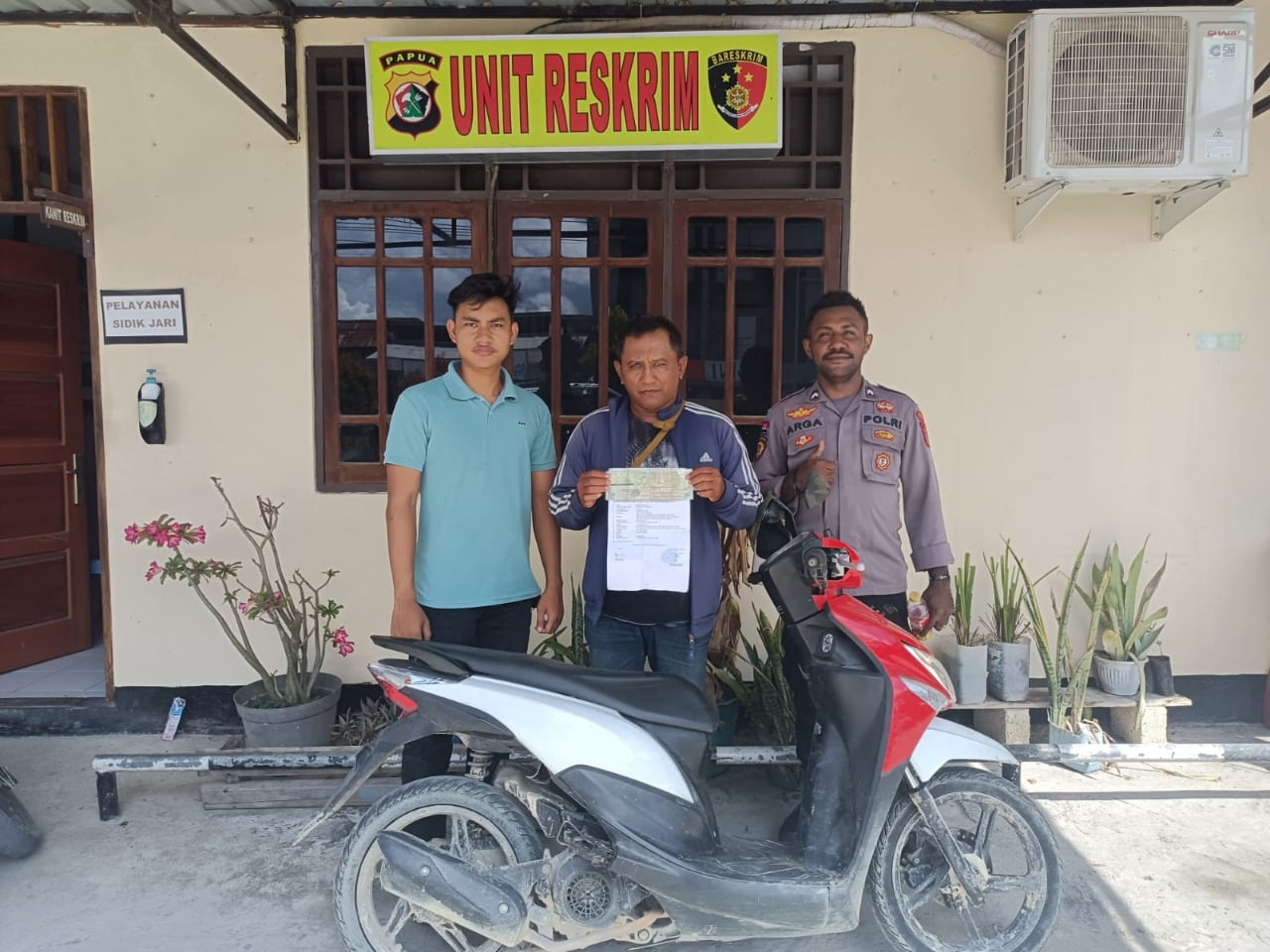 “Bapak Suharmanto warga Koya Tengah kemudian datang dan menunjukkan surat kepemilikan sekaligus dengan bukti laporan polisi bahwa dirinya pernah melaporkan hilangnya motor tersebut,” pungkasnya.