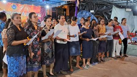 Pantauan media ini acara dimulai tepat pukul 19.00 Wit yang diawali dengan penyampaian laporan oleh ketua PHBG, ibu Widya Kusmawati Bebena, S, Pd.