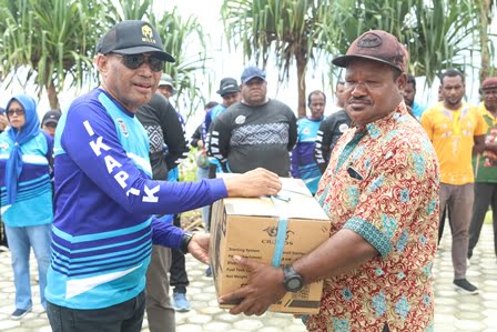 Selain itu diberikan juga alat olahraga seperti bola kaki, takraw, basket, Net dan kerja bakti. Ini merupakan Kampung kedua setelah bulan maret lalu di Kampung Yoka, Distrik Heram.
