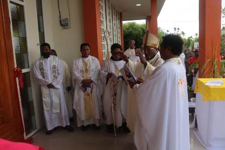 Dalam khotbahnya, Uskup Jayapura, Mgr. Yanuarius Theofilus Matopai You mengapresiasi umat dan seluruh panitia pembangunan yang dengan penuh kemandirian telah berusaha membangun Gereja yang akhirnya telah selesai itu.
