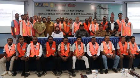 Jayapura, Teraspapua.com – Dinas Pekerjaan Umum Penataan Ruang (PUPR) Perumahan dan Kawasan Pemukiman Kota Jayapura, bekerjasama dengan Balai Jasa Konstruksi Wilayah VII Jayapura, menggelar Pelatihan dan Uji Sertifikasi Tenaga Kerja Konstruksi (TKK) di kota Jayapura.