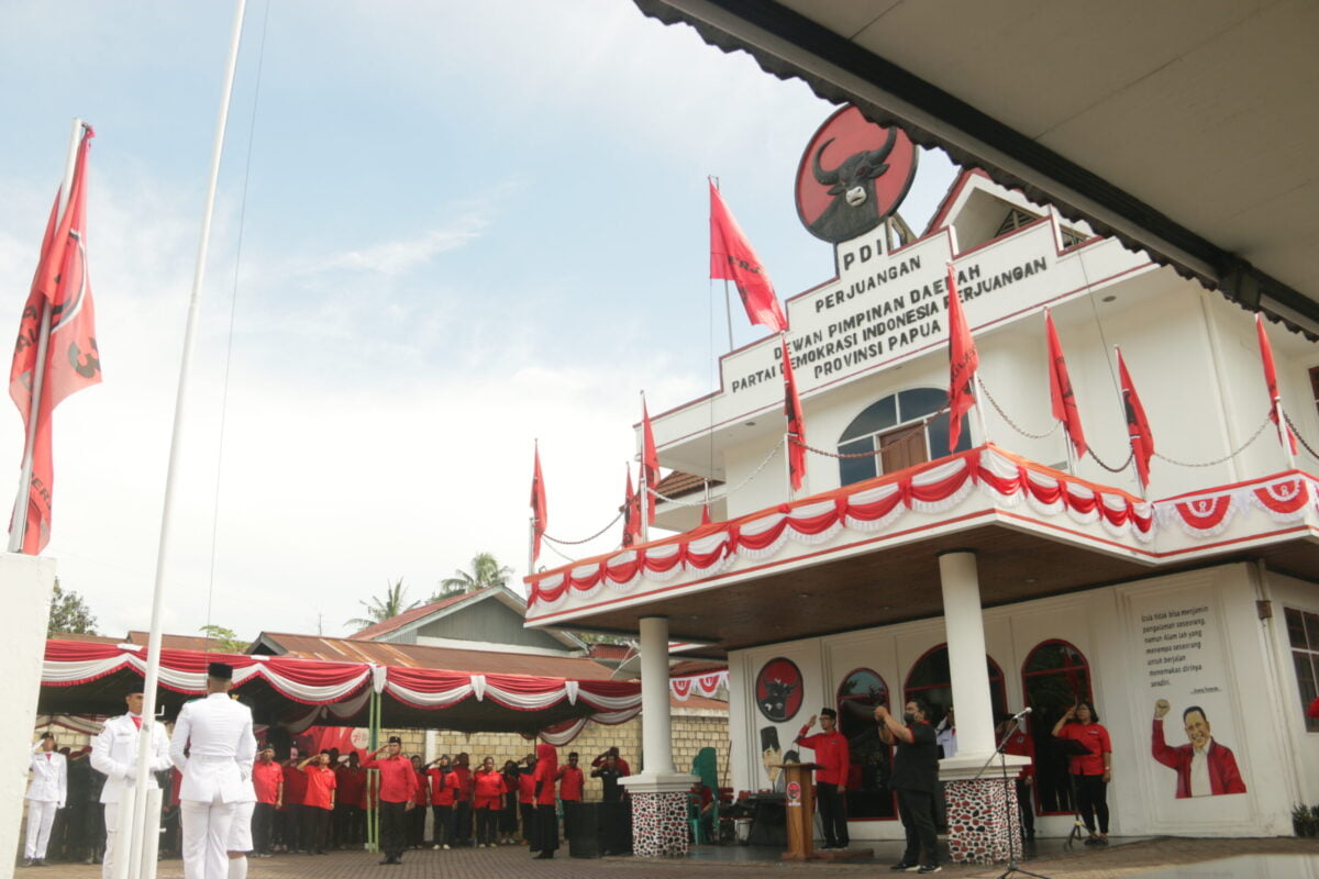 Jayapura,Teraspapua.com – Dewan Pimpinan Daerah (DPD) Partai PDI Perjuangan Provinsi Papua, gelar Upacara Kemerdekaan HUT RI ke 78. Bertindak sebagai Inspektur Upacara yakni Sekretaris PDI Perjuangan Papua, Surya Ibrahim, berlangsung di halaman Kantor DPD PDI Perjuangan setempat, Kamis (17/8/2023).