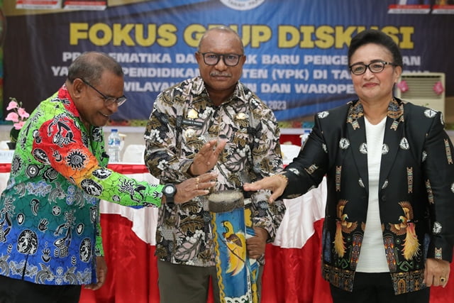 FGD dibuka secara resmi oleh Penjabat (Pj) Bupati Kabupaten Kepulauan Yapen, Welliam Robert Manderi, SIP., M.Si didampingi Ketua Dewan Pengawas BP YPK di Tanah Papua, Dr. Kristhina R. I. Luluporo, S, IP, M. AP dan Ketua PSW Kepulauan Yapen, Drs. Orgenes Runtuboi, M.Pd.