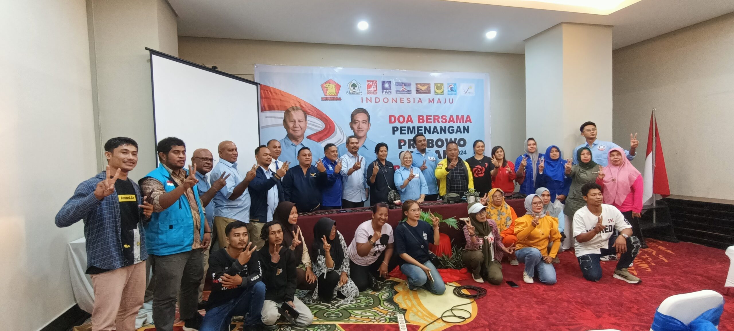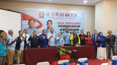 Acara Doa bersama yang berlangsung di Hotel Horison Jayapura itu, dihadiri 8 partai koalisi yakni Partai Gerindra, Golkar, Demokrat, PAN, PSI, Garuda, Perindo, Partai Bulan Bintang, Senin (27/11/2023).