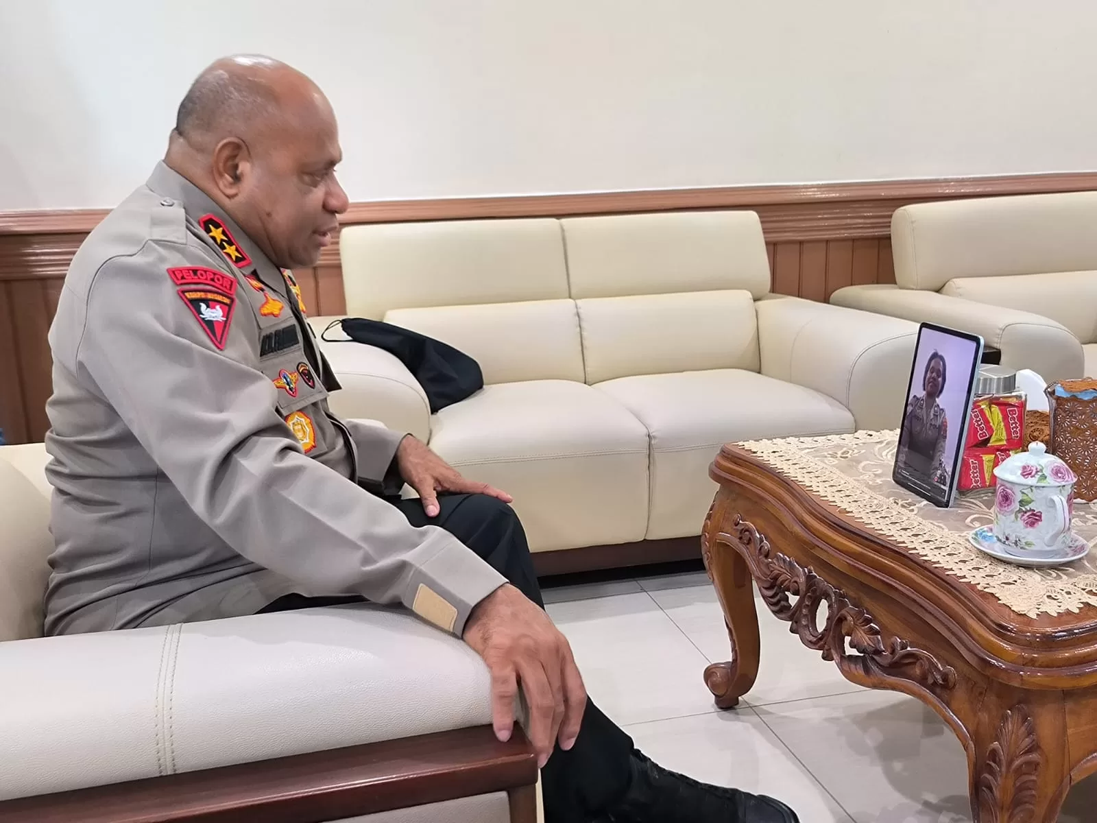 Jayapura,Teraspapua.com – Bripda Lince Hubi tak bisa menyembunyikan raut wajah bahagianya saat bertatap muka dengan Kapolda Papua Irjen Pol Mathius D. Fakhiri, meski hanya secara virtual melalui panggilan video (video call), Senin (06/05/2024).