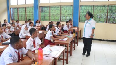 Kepala SMPN 2 Jayapura Dorthea Carolien Enok, SPd saat dijumpai Teraspapua.com disela-sela memantau pelaksanaan MPLS di ruang-ruang kelas mengatakan, pra- MPLS dilakukan pada tanggal 8 Juni 2024.