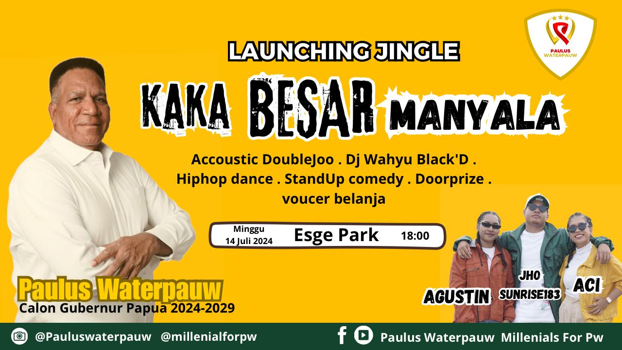 Launching jingle Kaka Besar Manyala dimeriahkan music akustik, stand up comedy, graffiti yang akan menggambar sosok Paulus Waterpauw selama acara berlangsung dan selanjutnya akan dipajang di Sekretariat Milenial Papua for PW.