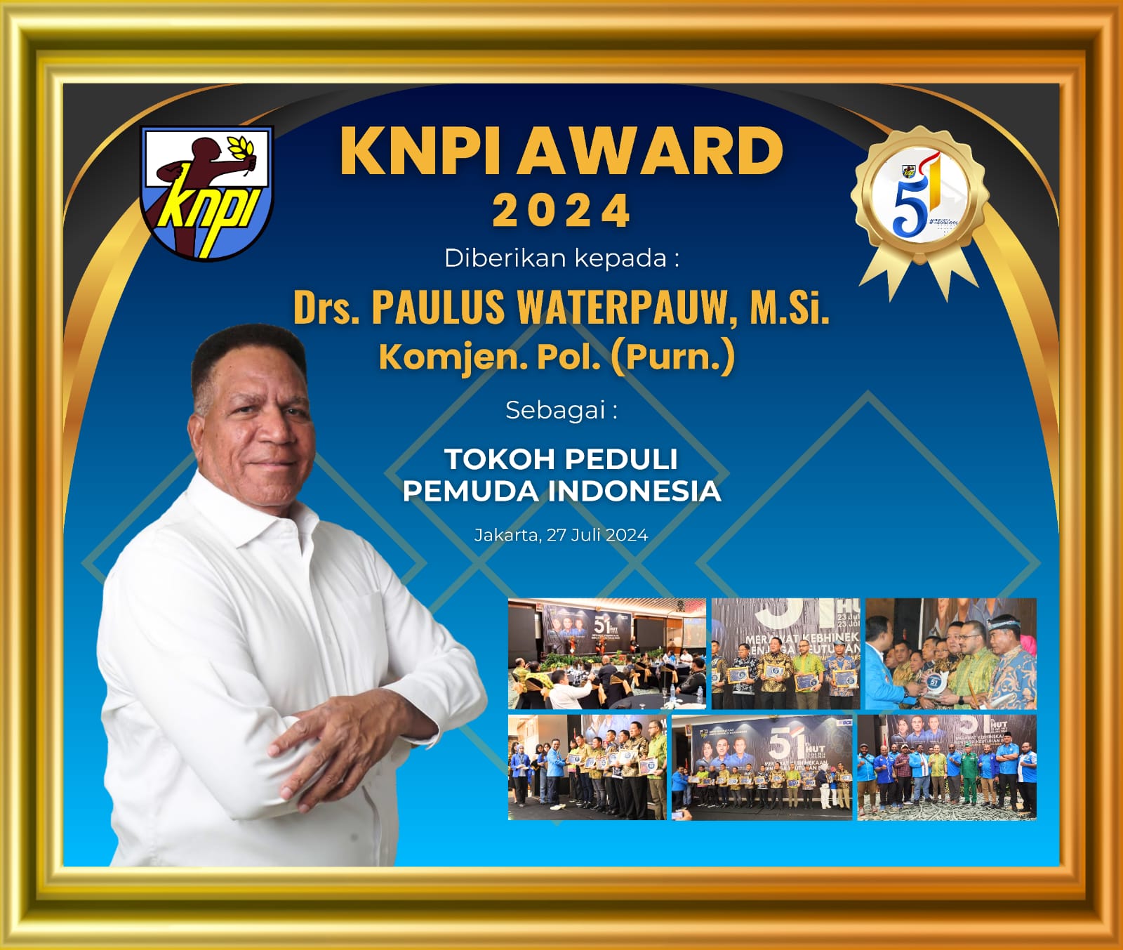 Salah satu tokoh yang menerima Penghargaan KNPI Award 2024 adalah Komjen. Pol. (Purn) Drs. Paulus Waterpauw, M.Si, mantan Kepala Badan Intelijen dan Keamanan Polri.