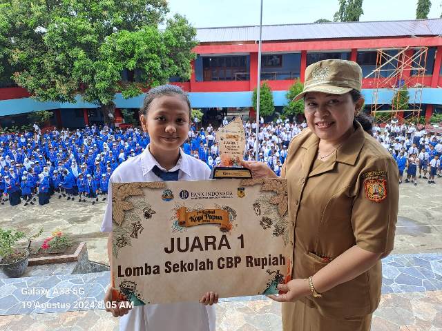 Salah satunya yaitu juara 1 lomba sekolah cinta bangga paham [ CBP] rupiah yang dilaksanakan oleh Kantor Perwakilan Bank Indonesia Provinsi Papua pada tanggal 15 Agustus 2024 lalu.