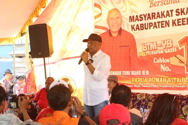 Skanto, Teraspapua.com – Calon gubernur Papua nomor urut 1, Benhur Tomi Mano yang diusung PDI Perjuangan melakukan kampanye tertutup dan terbatas di kabupaten Keerom, Kamis (3/10/2024).