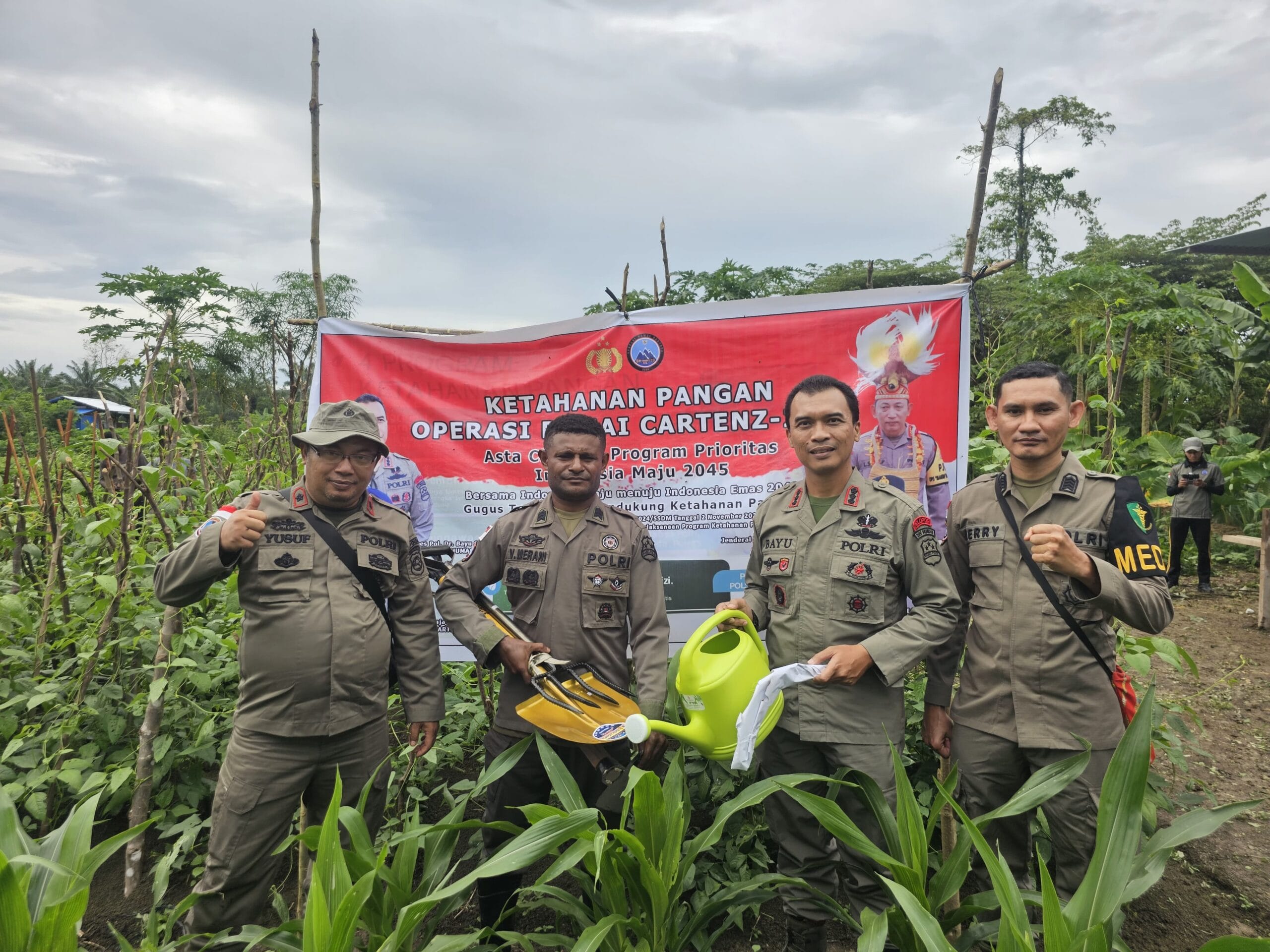 Jayapura,Teraspapua.com – Sebagai wujud nyata dari implementasi program Asta Cita dan Program Prioritas Indonesia Maju 2045, Polri melalui Operasi Damai Cartenz 2024 menggelar kegiatan Ketahanan Pangan di kebun milik personel Operasi Damai Cartenz 2024, Brigpol Viktor Merani, yang berlokasi di Kampung Malompo, Arso VI, Kabupaten Keerom, Papua. Kegiatan ini dipimpin langsung oleh Kasatgas Humas Operasi Damai Cartenz 2024, Kombes Pol. Dr. Bayu Suseno.