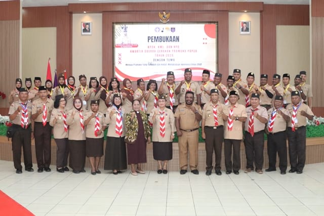 Jayapura, Teraspapua.com – Kwartir Daerah Gerakan Pramuka (Kwarda) Papua menggelar kegiatan Kursus Pelatih Pembina Pramuka Tingkat Dasar (KPD) Kursus Pembina Pramuka Mahir Tingkat Lanjutan (KML) Kursus Pengelola Dewan Kerja (KPDK), berlangsung di aula Badan Diklat Provinsi Papua Kotaraja dalam, Senin (18/11/2024).