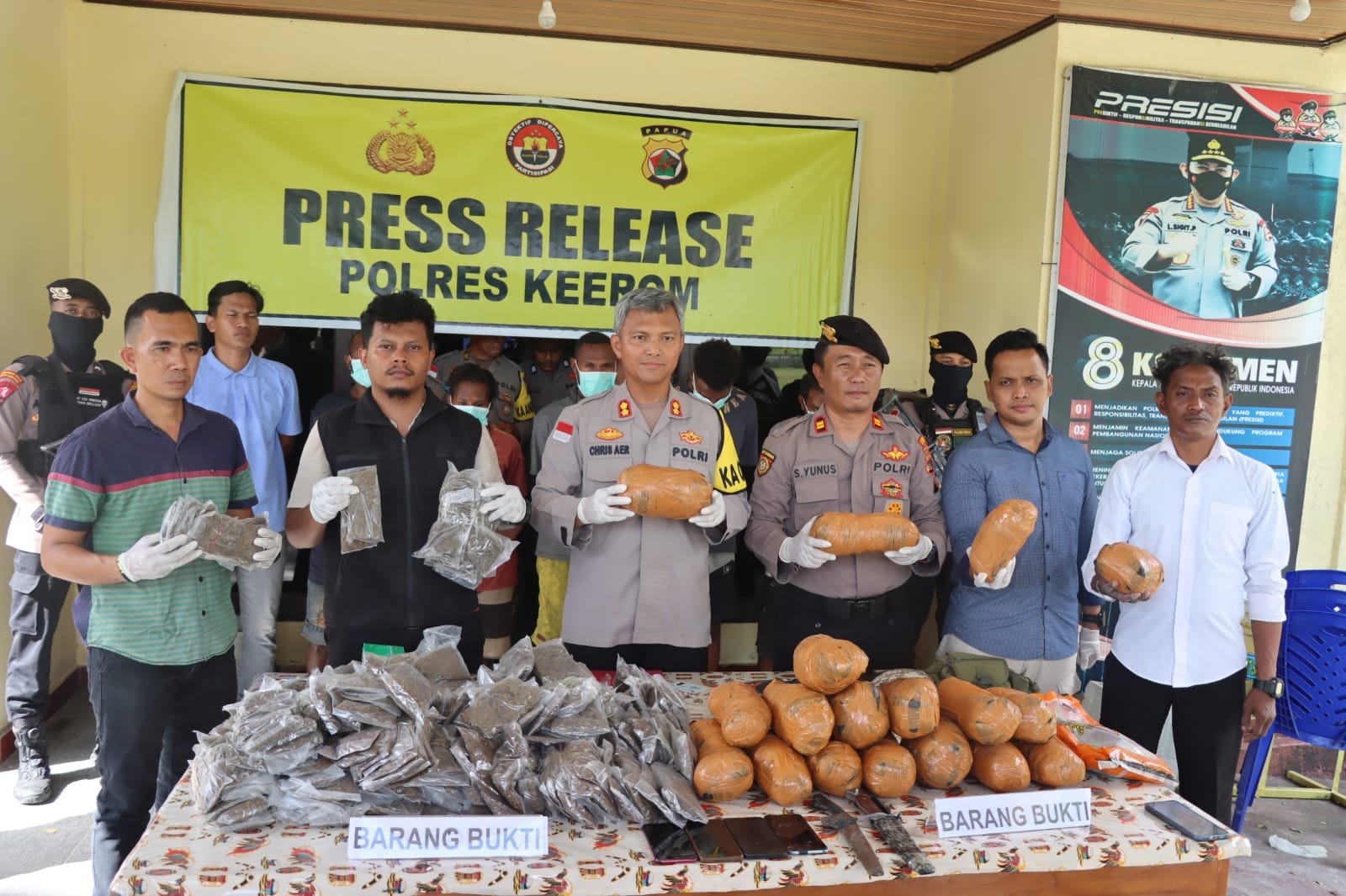 Jayapura,Teraspapua.com – Polres Keerom Polda Papua berhasil amankan 20 Kg Narkotika jenis ganja, dari 5 orang pelaku diantaranya 3 orang merupakan warga negara asing (PNG), Selasa (03/12/24).
