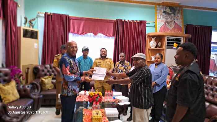 Jayapura, Teraspapua.com Calon Gubernur Papua nomor urut 1, Benhur Tomi Mano (BTM), secara resmi menerima surat pemberitahuan memilih atau formulir C6 pemberitahuan dari Ketua Kelompok Penyelenggara Pemungutan Suara (KPPS) Kelurahan Wahno. Penyerahan ini berlangsung di kediaman pribadi BTM pada Selasa (5/8/2025).