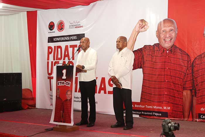 “Apalah arti kami tanpa rakyat, apalah arti partai tanpa doa. Tetapi bersama rakyat dan Tuhan, tidak ada yang mustahil bagi Papua.”