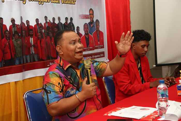 “Saya mengajak adik-adik mahasiswa untuk mengikuti seluruh rangkaian materi dengan tekun dan sungguh-sungguh. Jangan sia-siakan kesempatan ini. Hari ini kalian duduk nyaman dalam ruangan ber-AC, beda jauh dengan masa kami dulu yang serba terbatas. Gunakan momen ini untuk memacu diri,” tegas Betaubun, yang juga merupakan alumni Fakultas Hukum Uncen dan pernah menjabat sebagai Ketua Senat Mahasiswa periode 2004–2005.