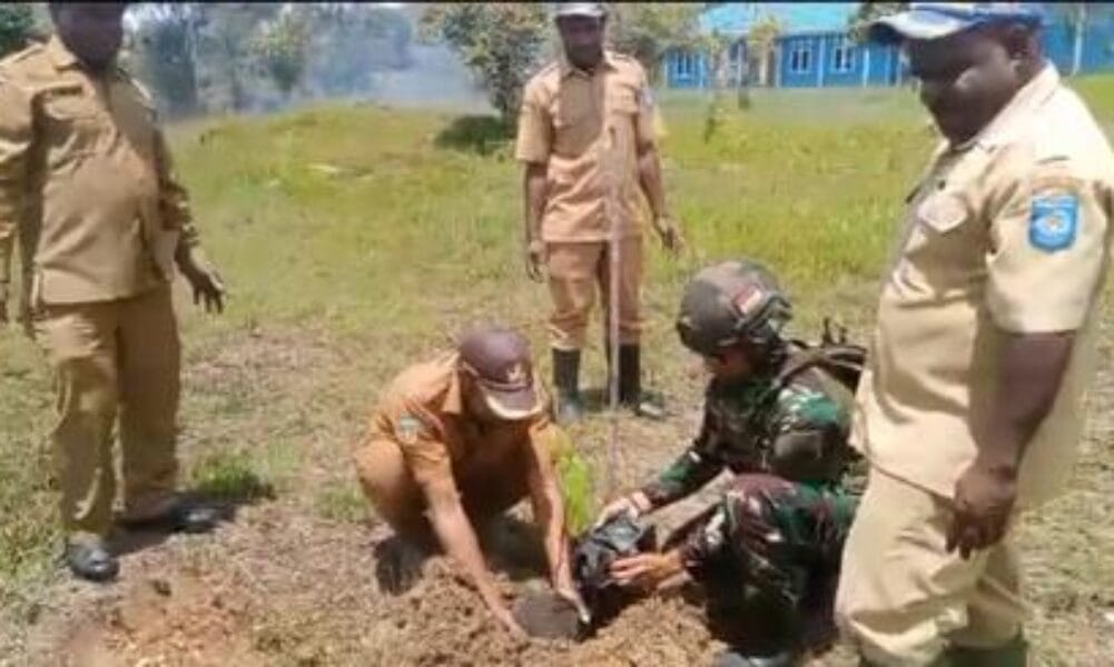 Kobakma,Teraspapua.com – Kepala Dinas Pertanian Kabupaten Mamberamo Tengah, Natalis Walela, bersama staf dan anggota TNI melakukan penanaman tanaman jangka panjang di halaman kantor Dinas Pertanian, Senin (15/9/2025).